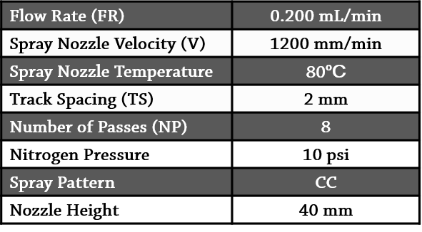 Table 1. Spray parameters for the in vitro grown biofilms.